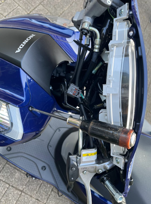 先日、ハンドルロック中にバッテリーが上がった時、フロントカバーのネジが外せなくて困るとお伝えしましたが、別の対策案を考え実施してみました。