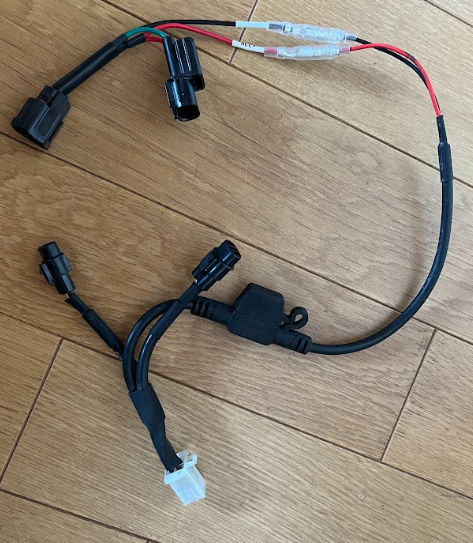 電源取出しは先日購入したものをグリップヒーターの電源系にあらかじめ接続できるようにしておきました