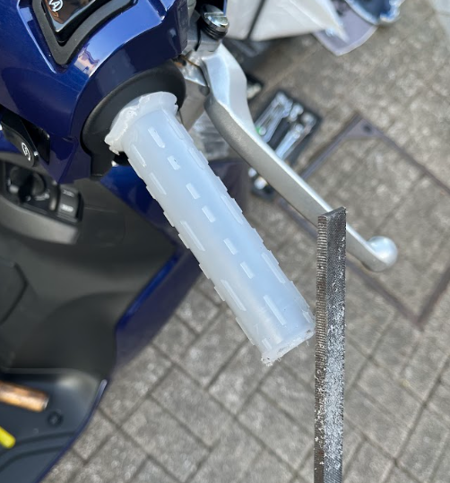 付け根までは綺麗に入りませんでしたが、年中ハンドルカバー付きなので良しとします